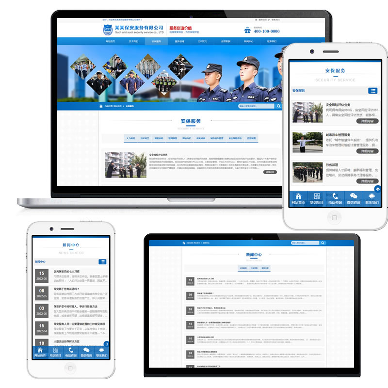 模板程序独家销售,纯手工制作网站代码本网站源码以蓝色为主,html5自适应营销型保安服务类企业网站模板,适合保安公司,安保服务培训管理,物业管理,停车服务等服务型企业等企业网站制作。