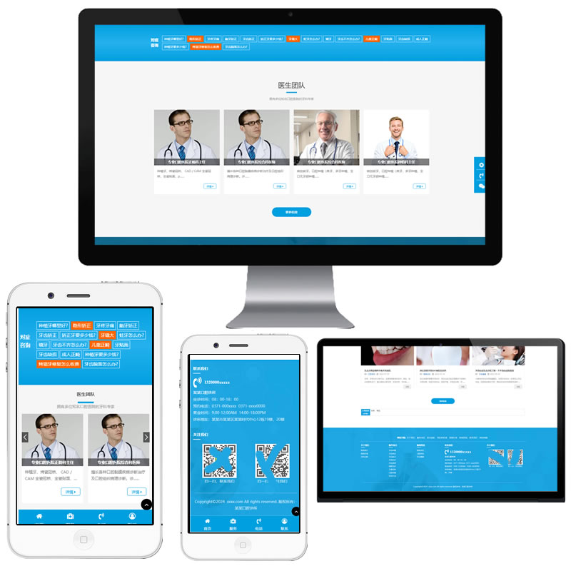 模板程序自己制作销售,纯手工制作,本网站源码以蓝色为主,通用型医院诊所门诊服务网站源码,适合医院诊所,整形美容,口腔牙科,眼科,中西医门诊,中小型医院诊所等相关行业的单位和企业快速建站网站制作的需求。